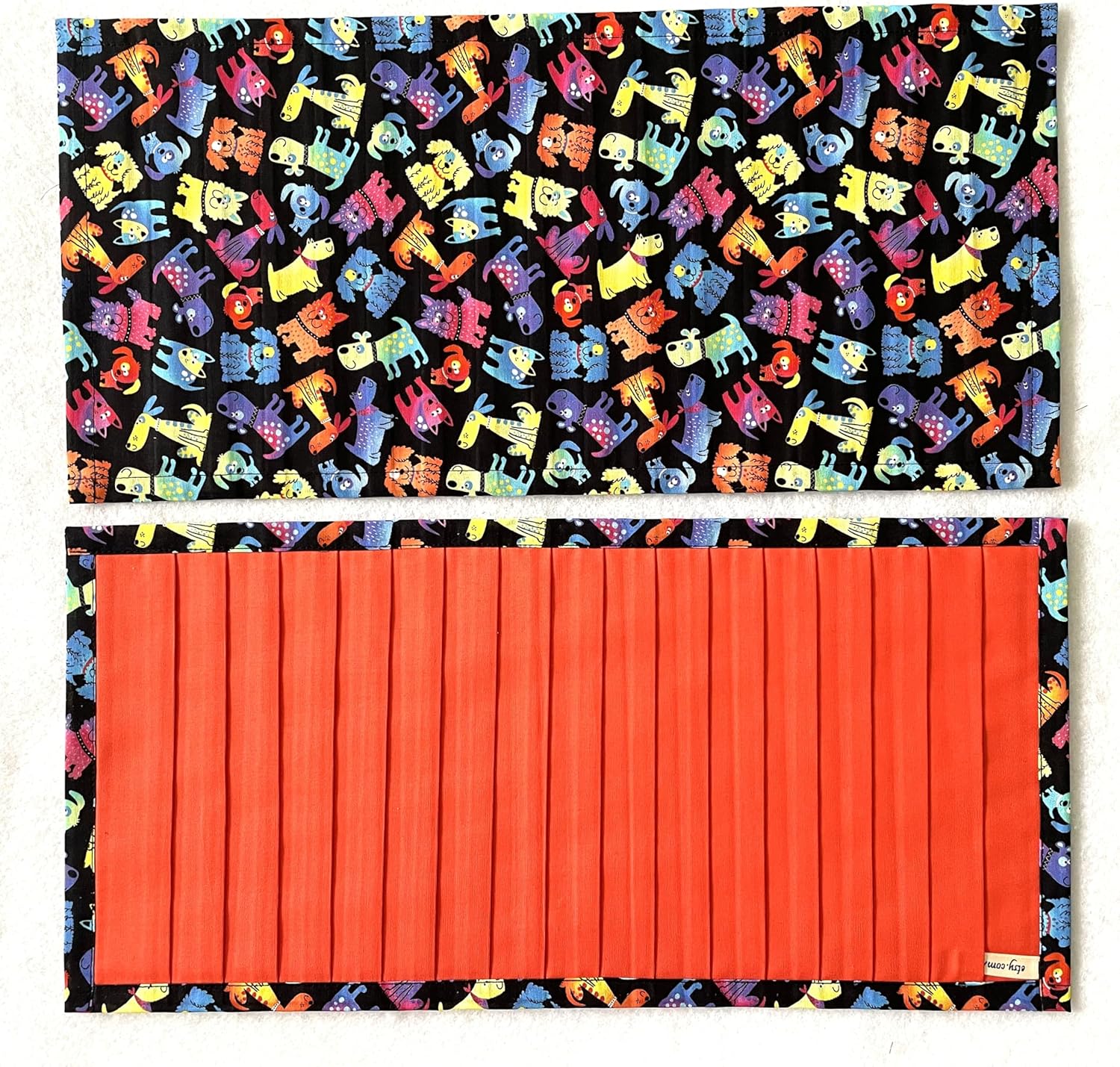 16 pocket playing card mat for games such as Samba, Hand & Foot and Canasta. Mat holds open or closed books in orderly fashion and easily read by partner from across the table as mat can be slid with ease towards them. Approx. 8 1/2" wide x 18 1/2 " in length. Colorful,fun backs are 100% cotton, pleated fronts are a poly/cotton mix that helps reduce fading and wrinkles. Hand wash and dry flat, iron touch up may be needed due to cotton content. 7 pocket mats approx 8 1/2" x9 1/2" sold with the 16 pocket mats are optional. BUT are suitable mostly for Canasta and Hand & Foot. You may find them too small for the different versions of Samba as some of the Samba games may have a dozen or more closed books by game's end